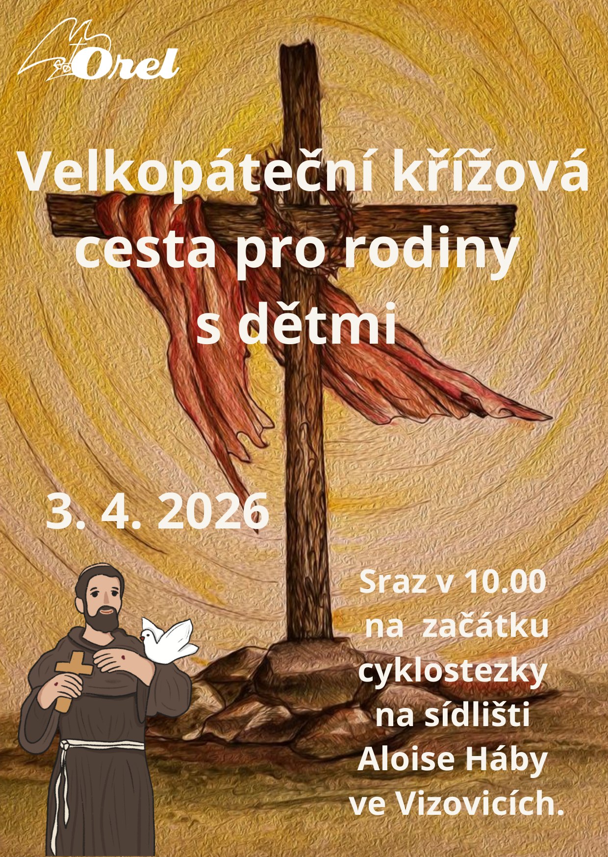 Chcete svým dětem více přiblížit události Velkého pátku a umožnit jim prožít netradičně Ježíšovu křížovou cestu? Srdečně vás zveme 3. dubna na Velkopáteční křížovou cestu pro rodiny s dětmi. Průvodcem nám bude sv. František z Assisi, jehož 800. výročí úmrtí si letos připomínáme.